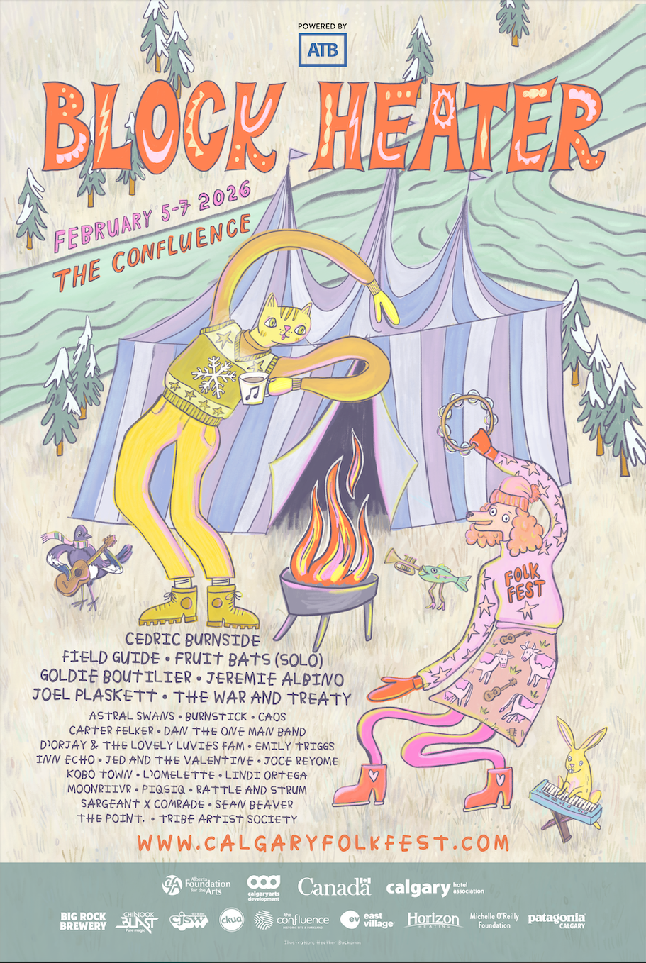 The Calgary Folk Fest’s Block Heater promotional video was commissioned to bring the festival’s artwork into motion. Using poster and design elements created by artist Heather Buchanan, I transformed the visuals into a fully animated, dynamic piece. Each character and detail comes to life through animation, resulting in an energetic promotional video that captures the spirit of the festival and expands the original artwork into an engaging, immersive experience.